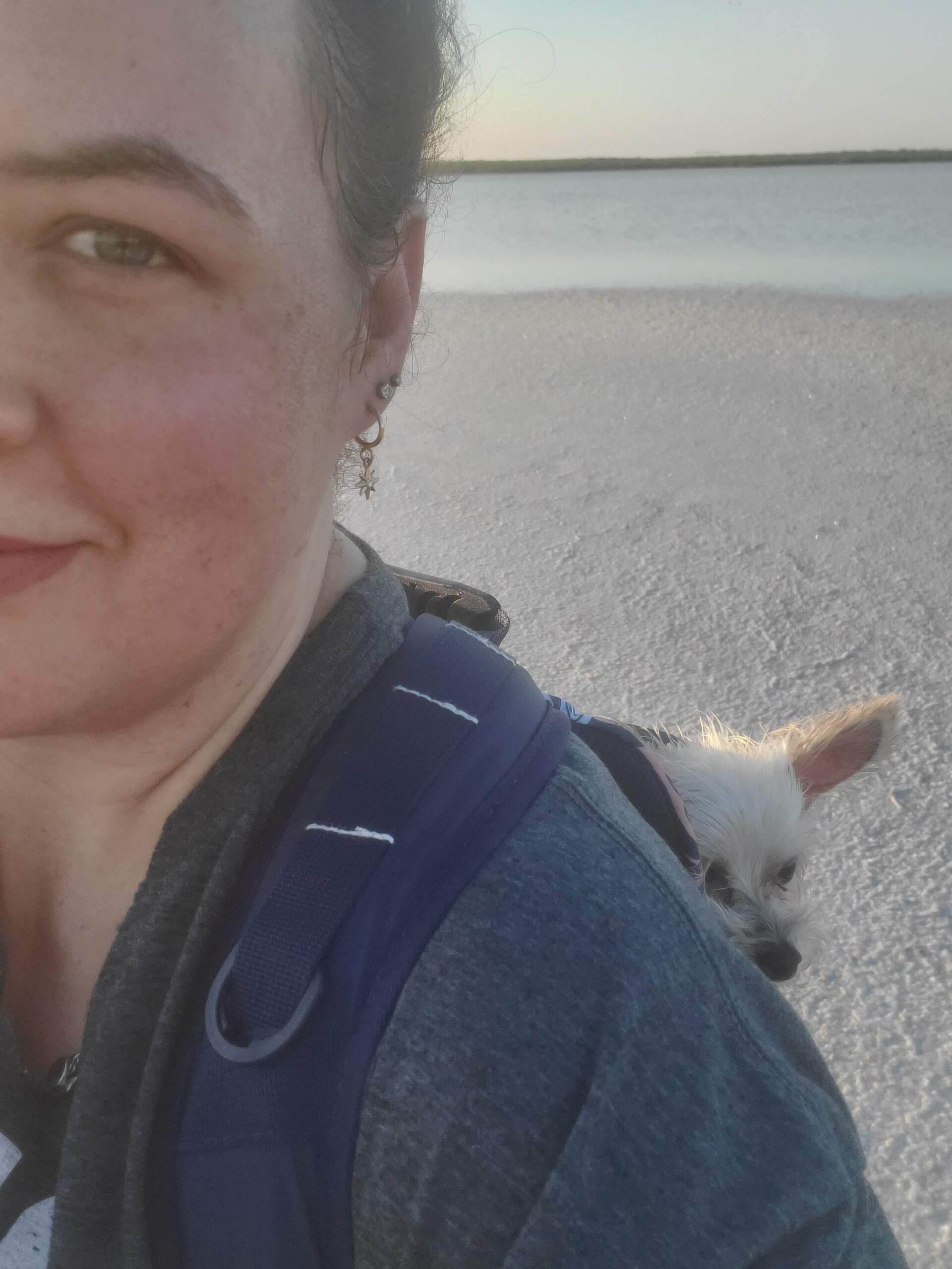 The lake is located within the Lower Rio Grande Valley National Wildlife Refuge, and so you're likely to see all kind of animal tracks if not animals themselves, including ocelot, javelina, deer, etc. The lake is about a mile and a half walk in from the parking lot, and Lucy's little legs tired out pretty quickly, so she ended up taking the trip in my backpack.