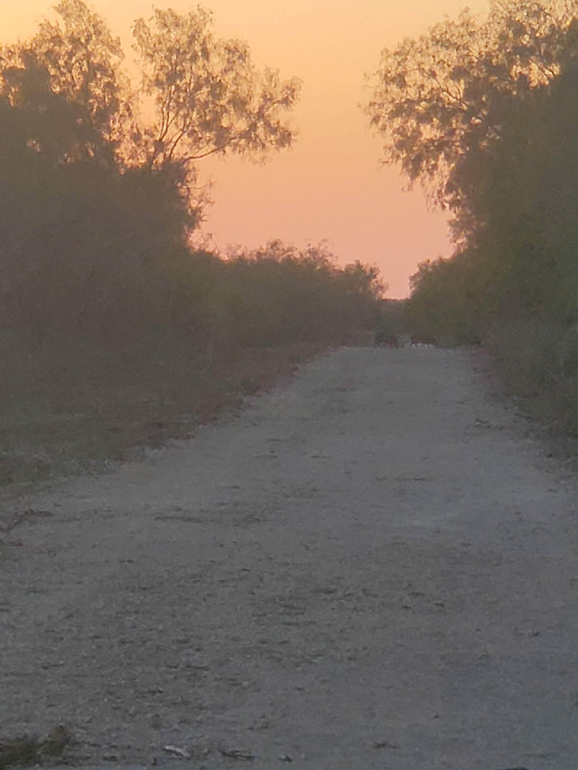 About halfway back, we encountered a herd of javelina that were crossing the path. A few of them stood their ground and stared at us in the path, the bristles on their back standing up, while the rest watched from the brush beside the trail. I was at that point super glad that Lucy was in my backpack. Having heard how vicious they can be, we grabbed some sticks and brought the mace out of my backpack. Thankfully, we didn't have to use either, as they eventually scampered back into the woods. We managed to hurriedly cross before the rest of the herd decided to use the same path. From a distance, I got a very grainy picture of the herd crossing once we'd passed.